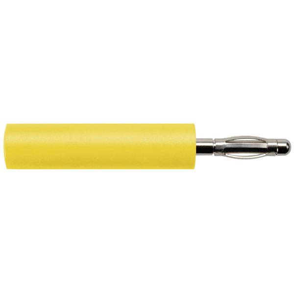 This Schützinger adapter features a 4 mm pin diameter in a yellow finish, suitable for safety application. As a laboratory connector, it's ideal for securely connecting electrical equipment. Typical applications include use in test benches, ensuring safe and stable connections.
