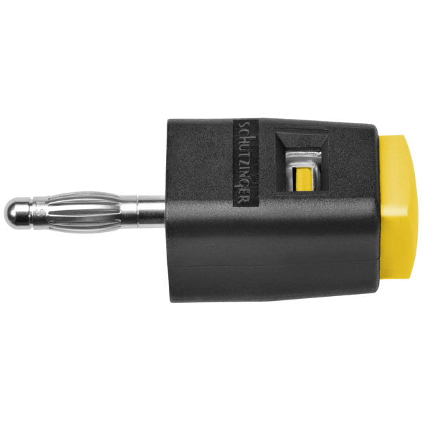 Manufactured by Schützinger, the Safety quick-fit terminal is designed for fast and secure electrical connections. This yellow terminal supports up to 16 A, offering robust performance in various electrical applications. Typical uses include laboratory settings and electrical testing environments where secure connections are critical.