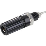 A black 4mm binding post terminal, ideal for mounting on a metal panel as it is fully insulated.