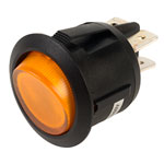 Low-cost nylon DPST rocker switch with illuminated amber concave rocker.