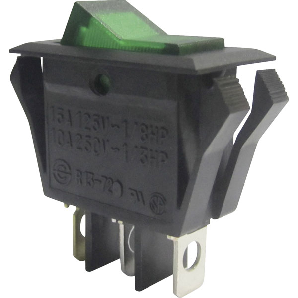 SCI R13-72B-01 10A Rocker Switch Green 3P SPST On-Off