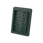 A waterproof ATC fuseholder block housing 10 fuses, providing 10 independently fused outputs from a common input. An LED lights if a fuse blows. In addition, there are unconnected positions for storage of up to 6 spare fuses.