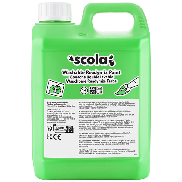 Scola Washable Readymix Paint is the perfect choice for young artists, offering vibrant, fully intermixable colours that inspire creativity. Specially formulated to wash off skin and most fabrics easily, this paint ensures easy clean-up. Available in 30% recycled plastic bottles, it can be used straight from the bottle or diluted with water for a colour wash effect. Ideal for schools, nurseries, and home use, Scola Washable Readymix Paint dries to a beautiful matte finish and is safe for children aged 1 and above.