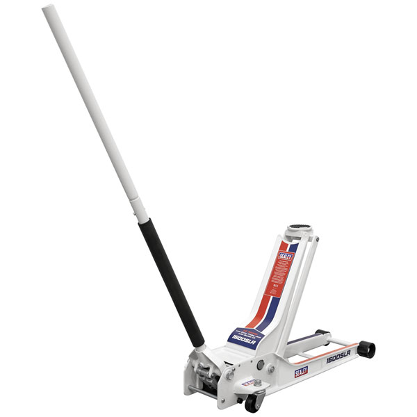Overload safety valve prevents maximum weight capacity being exceeded and white saddle with rubber jack pad, aids secure positioning under vehicle.