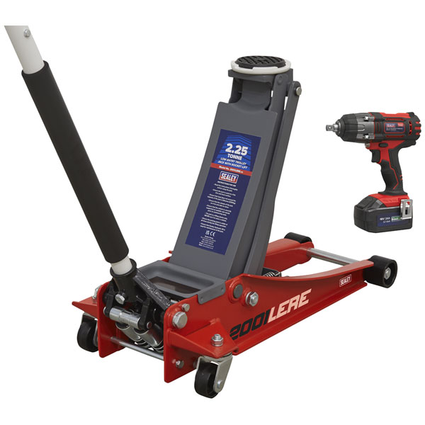 Sealey 2001LERECOMBO 2.2 Tonne Trolley Jack & 18V Cordless Impact Wrench - Red