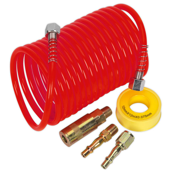 Sealey AHK03 Air Hose Kit 5m x Ø5mm PU Coiled with Connectors