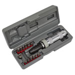 Heavy-duty 1/2"Sq drive impact driver with Chrome Vanadium steel bits. Chrome plated impact body with twist reverse function. Heavy knurling allows grip by oily hands. Supplied in composite storage case.