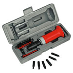 Heavy-duty 1/2"Sq drive impact driver with composite handle and integral knuckle guard. Supplied with 13pc Chrome Vanadium steel driver bit set and 1/2"Sq drive adaptor. Supplied in storage case.