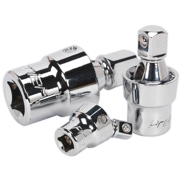 Manufactured from hardened and tempered Chrome Vanadium steel with a fully polished mirror finish. Three universal joints with a spring-ball socket retainer. Unique design allows for smooth rotation and high torque.
