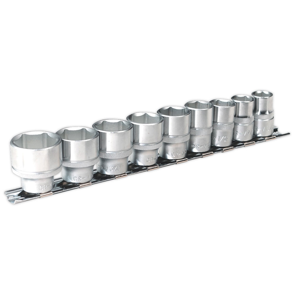 Chrome Vanadium steel sockets. Hardened and tempered with half chrome, half satin finish for corrosion resistance. Knurled ring for extra grip with oily fingers. WallDrive® configuration gives an additional 30% more torque handling power than traditional sockets. Handles rounded fixings as well. Supplied on socket rail.