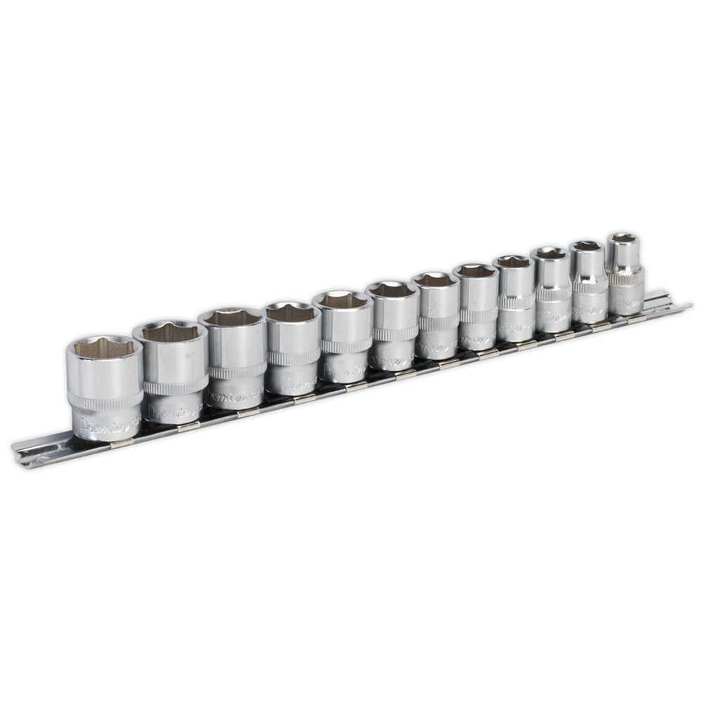 Chrome Vanadium steel sockets. Hardened and tempered with half chrome, half satin finish for corrosion resistance. Knurled ring for extra grip with oily fingers. WallDrive® configuration gives an additional 30% more torque handling power than traditional sockets. Handles rounded fixings as well. Supplied on socket rail.