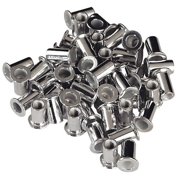 Hollow aluminium rivets with an M3 internal thread. When fixed to a panel, the rivets can accomodate a machine screw or bolt.