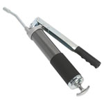 Highly durable cast iron pump head, features dual piston design for high volume performance. Three-way fill with cartridge, bulk or manual capability. Supplied with rigid delivery tube and push-on hydraulic 4-jaw coupling. Rubber gripped grease tube and handle for easy grip. Features variable stroke for controlled grease volume. Half stroke gives low pressure and low volume, full stroke provides high pressure and high volume delivery. Accepts standard 400g cartridges.
