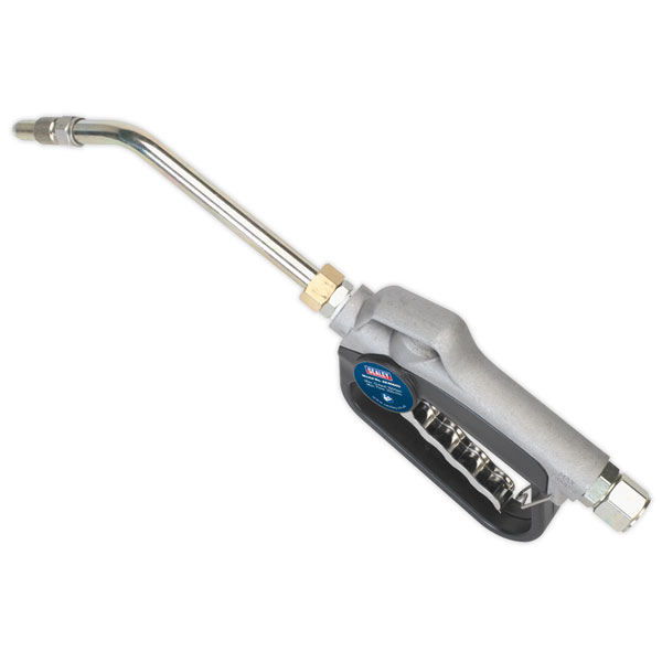 Robust oil dispensing gun incorporating manual shut off. Fitted with rigid extension, handle lock and non-drip nozzle. Please note that this gun is not approved for the resale of oil.