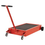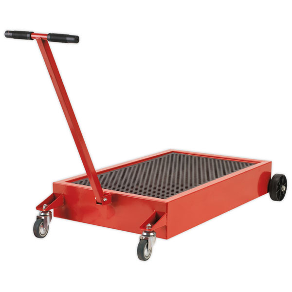 Low level drainer suitable for use on the forecourt and workshop floor. Steel fabricated unit with a capacity of 64L. Fitted with gravity drain tap for manual discharge. Fully portable with two castors, two fixed wheels and handle for manoeuvring around the workshop.