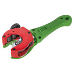 Heavy-duty, professional ratchet pipe cutter. Fitted with ergonomic contoured handle for added grip, ideal for use in confined spaces. 2-in-1 Feature allows ratchet head to be removed for use as a standard hand pipe cutter. Robust ratchet head features fully adjustable blade positioning providing a cutting capacity of Ø6-28mm. Features a hardened and tempered cutting blade which easily cuts through copper, aluminium and brass piping. Fitted with hanging hole.