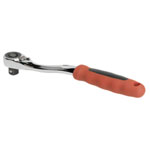 High quality Chrome Vanadium steel reversible ratchet wrenches. Hardened and tempered with fully polished mirror finish. Ergonomically styled handle and anti-slip grip for added comfort and control. Low profile head and ultra-smooth twin pawl 72-tooth ratchet is ideal for use in restricted areas. Features flip reverse, spring ball socket retention and push-button quick release.