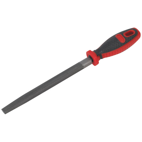 Smooth cut file for a finer finish to the workpiece. Features comfort grip handle with hanging hole.
