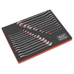 Cold stamped slim style Chrome Vanadium steel spanners with a satin polished finish for corrosion resistance. Open end and 12-point WallDrive® ring combination. Supplied in EVA storage tray.
