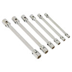 Drop-forged Chrome Vanadium steel flexi-head socket spanners with slim style shafts. Hardened and tempered with a fully polished finish for strength and corrosion resistance. Supplied in storage case.