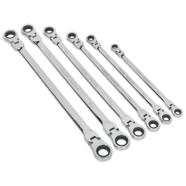 Sealey AK63832 Flexi-Head Double End Ratchet Ring Spanner Set 6pc Extra-Long