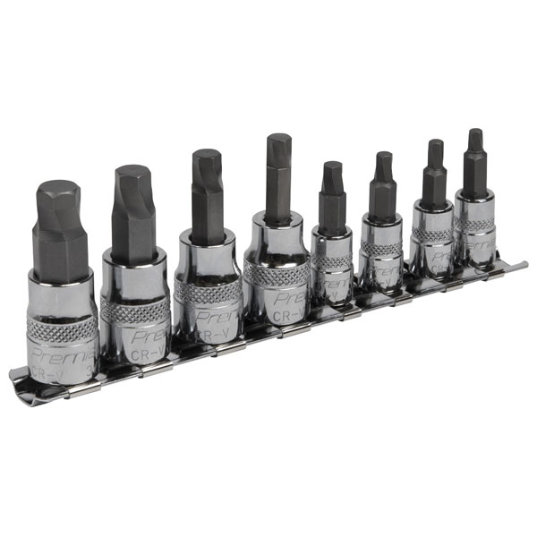 Sealey AK65602 Hex Socket Bit Set Lock-On™ 8pc 1/4" & 3/8"Sq Drive Imperial