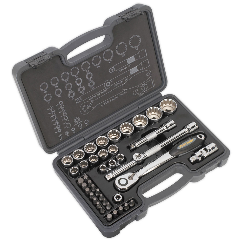 Sealey AK706 Spline Socket and Bit Set 42pc 1/2"sq Drive Total Drive