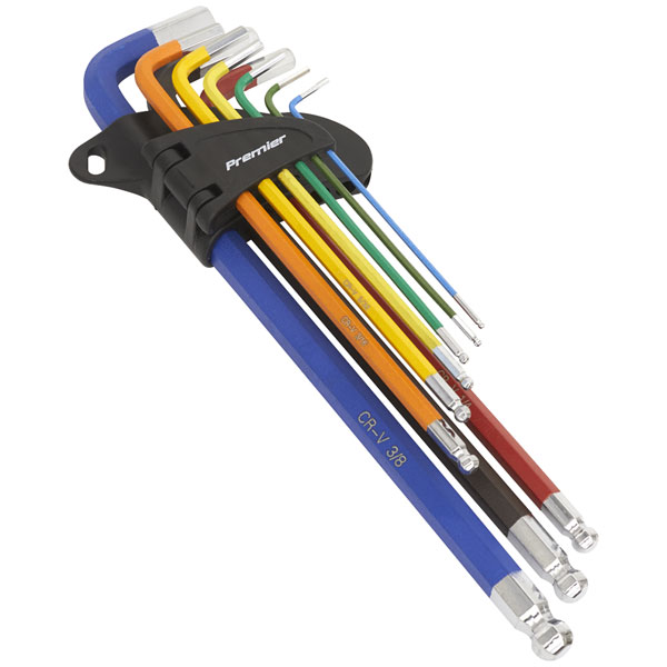 Sealey AK7198 Ball-End Hex Key Set Extra Long 9pc Colour-Coded Imperial