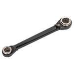 Manufactured from Chrome Vanadium steel, hardened and tempered with a fully polished black chrome finish. Innovative ring design allows four different sizes on one spanner. 72-Tooth ratchet rings require only 5º rotation to pick up the next tooth, ideal for applications where space is limited.