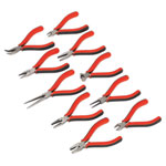 Contents:110mm Diagonal Side Cutter, 125mm Round Nose Pliers, 100mm End Cutter, 125mm Snipe Nose Pliers, 150mm Needle Nose Pliers, 115mm Combination Pliers, 125mm Long Nose Pliers, 120mm Flat Nose Pliers, 110mm Narrow Jaw Diagonal Side Cutter, 120mm Narrow Jaw Flat Nose Pliers