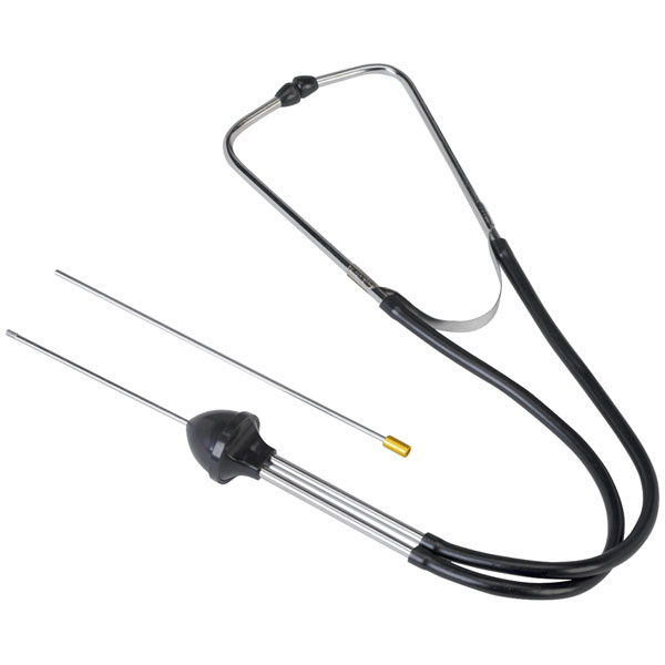 Quickly locate the source of engine noise such as piston slap, worn gears and bearings, damaged valves, water pump failure and blown gaskets. Also useful for tracking down dashboard rattles and squeaks. Plastic ear pieces and 300mm probe with sound amplifying chamber.