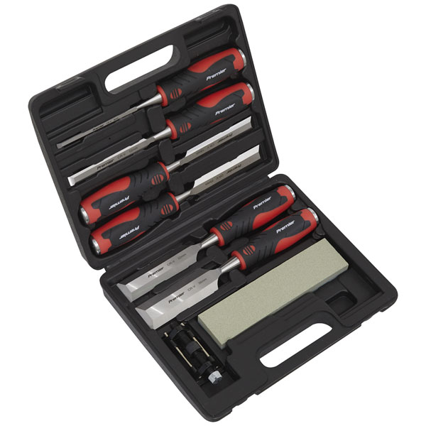 • Contents: 6, 12, 19, 25, 32, 38mm Chisels, 203mm Sharpening Stone, Honing Guide.