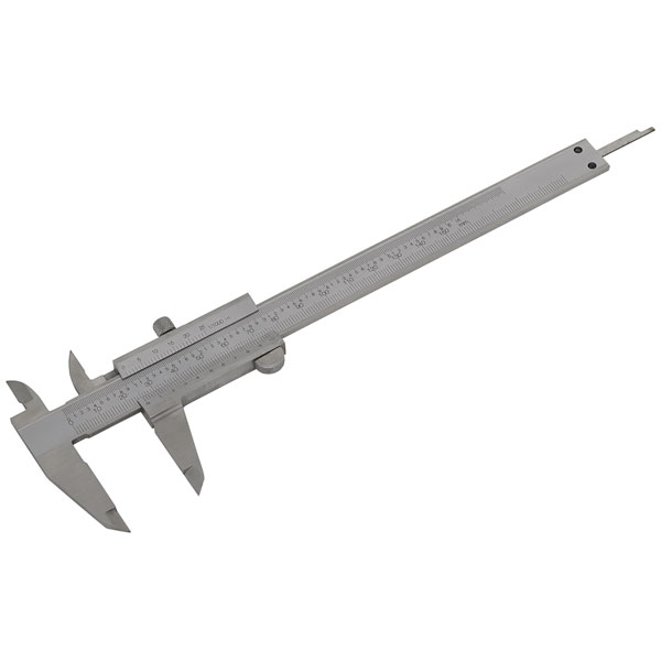 High quality, hardened and tempered stainless steel caliper with exterior/interior measurement and depth gauge. Metric and imperial scales graduated in 0.02mm and 0.001". Supplied in storage case.
