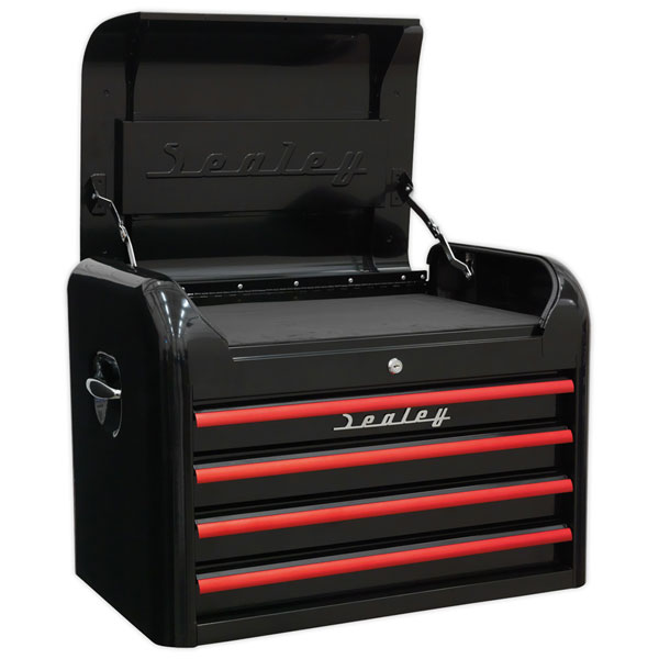 Sealey AP28104BR Topchest 4 Drawer Retro Style - Blk + Red Anodised Drawer Pulls