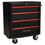 Sealey AP28204BR Rollcab 4 Drawer Retro Style- Black + Red Anodised Drawer Pulls