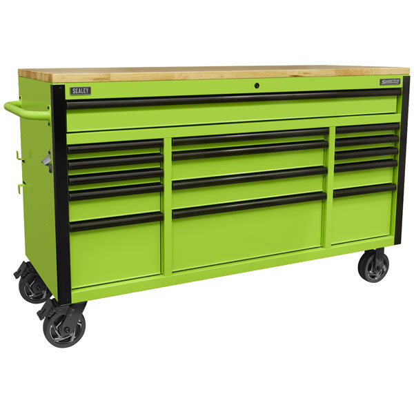 Side handle for added comfort when manoeuvring around the workplace and stylish 30mm wooden work top.