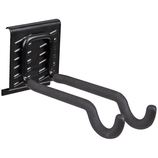 • • Steel sports equipment storage hook. • Powder coated to prevent oxidisation. • PVC Wrapped to avoid damage to tools and equipment. • Overall maximum load of 20kg. • Dimensions: (W x D x H): 76 x 200 x 90mm. • Designed to be used in conjunction with Wall Mountable Storage Rail Model No. APH01 for quick and easy installation and repositioning. • Ideal for sporting equipment and long handle tools. • Model No. APH06