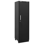 Use as part of a complete professional garage storage system or as an individual storage unit. All steel construction with a graphite powder coat finish. Heavy-duty full height single door cabinet. Three adjustable shelves. Four level-adjusting feet. Added security provided by cylinder lock, supplied with two keys. Requires some self-assembly. Supplied flat-packed for ease of transportation.