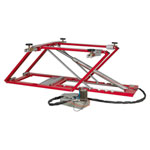 Manoeuvrable low profile lift with retracting wheels for easy positioning under vehicles. Air/hydraulic pulse pump operating system. Four multi-position, height adjustable saddles with rubber pads. Maximum lift of 1060mm with six height locating positions. Suitable for use with a wide range of vehicles.