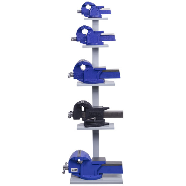 Package Includes: CV100E - Vice 100mm Fixed Base CV125E - Vice 125mm Fixed Base SGV150 - Industrial Vice 150mm SG Iron CV150E - Vice 150mm Fixed Base CV200E - Vice 200mm Fixed Base BGVDS01 - Display Stand Bench Grinders & Vices