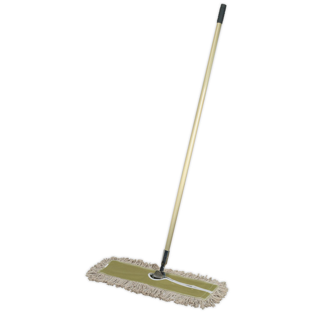 Manufactured with 600mm highly absorbent head ideal for gathering dust particles over a large area. Fitted with 1390mm aluminium handle and metal locking clip. Replacement heads available.