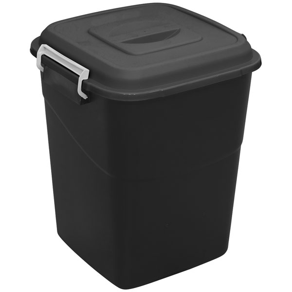 • • Durable refuse/storage bin made from polypropylene. • Fitted with lid latches to keep lid secure and carry handles. • Suitable for outdoor use. • 50 Litre capacity. • Model No. BM50B
