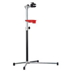 Corrosion resistant zinc plated steel tubes constructed with aluminium head and foot castings for strength and durability. High impact resistant jaws swivel through 360° and will accept down-tubes, crossbars and seat-posts of racing, mountain and hybrid bikes. Multi-position storage tray ensures tools are always close at hand and includes a can holder. Legs and top arm are removable for ease of storage.