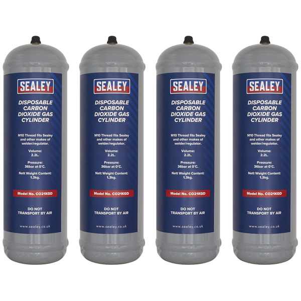 Sealey CO21KGD4 Disposable Carbon Dioxide Gas Cylinder 1.3kg - Pack of 4