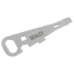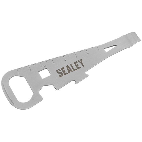 7 FUNCTIONS - Functions include: Can Opener, Bottle Opener, Ruler, Nail Puller, 8mm Nut Wrench, 13mm Hex Wrench, Screwdriver.