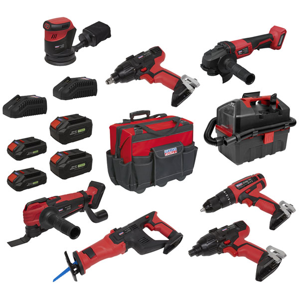 Sealey CP20VCOMBO4EU 8 x SV20 Series Cordless Power Tool Kit 20V Euro Plug