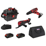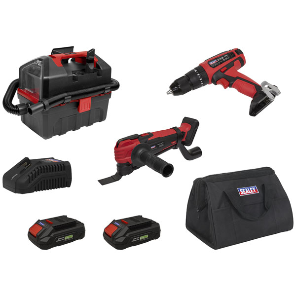 Sealey CP20VCOMBO5EU 3 x SV20 Series Cordless Power Tool Vac Kit 20V Euro Plug