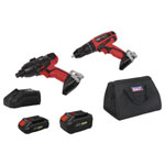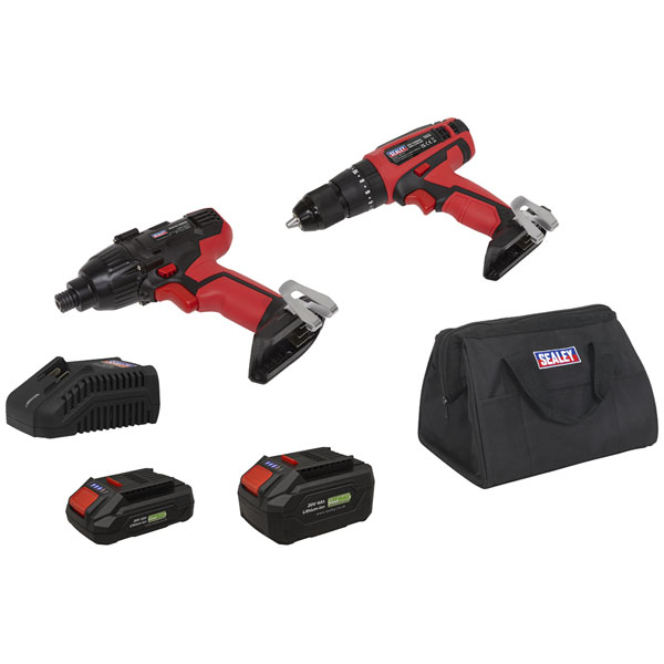 Sealey CP20VDDCOMBOEU 2 x SV20 Series Cordless Power EU Tool Kit 20V Euro Plug