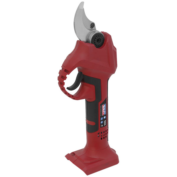 Cordless 20V pruning shears - body only. Power assisted pruning shears makes pruning stems and branches quick and easy. Cuts through branches up to Ø25mm. Brushless motor which gives improved performance and requires less maintenance than the brushed equivalent, making a more efficient, longer lasting tool. Additional safety switch for extra protection. Ergonomic and lightweight in design, this tool makes a great addition to your garden equipment. Requires compatible 20V battery and mains charger, sold separately.