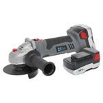 Lightweight and compact design. Features heavy-duty alloy bevel gear head with aluminium gear casing. Features spindle lock for quick disc changes and adjustable disc guard. Supplied with side handle and soft grip body for added comfort and control. Powered by Lithium-ion battery, which maintains a high energy density level with a flat discharge curve - performing better and longer than a conventional Ni-Cd/Ni-MH battery. No memory effect allows the battery to recover from a deep discharge with no tendency to reduce overall capacity. Supplied with 1 hour mains charger, two batteries and canvas storage bag.